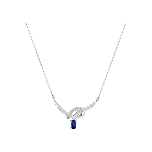 Collier en or blanc, topaze bleue et oxyde de zirconium