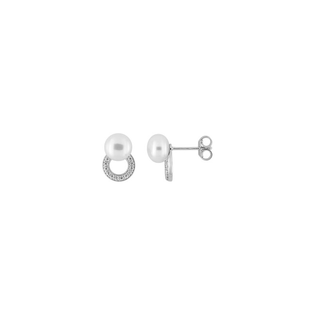 Clous d'oreilles 6mm en or blanc, perle de culture 6mm et oxyde de zirconium