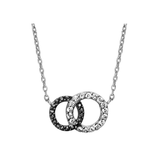 Collier 2 cercles entremêlés en argent rhodié et pierres blanches et noires