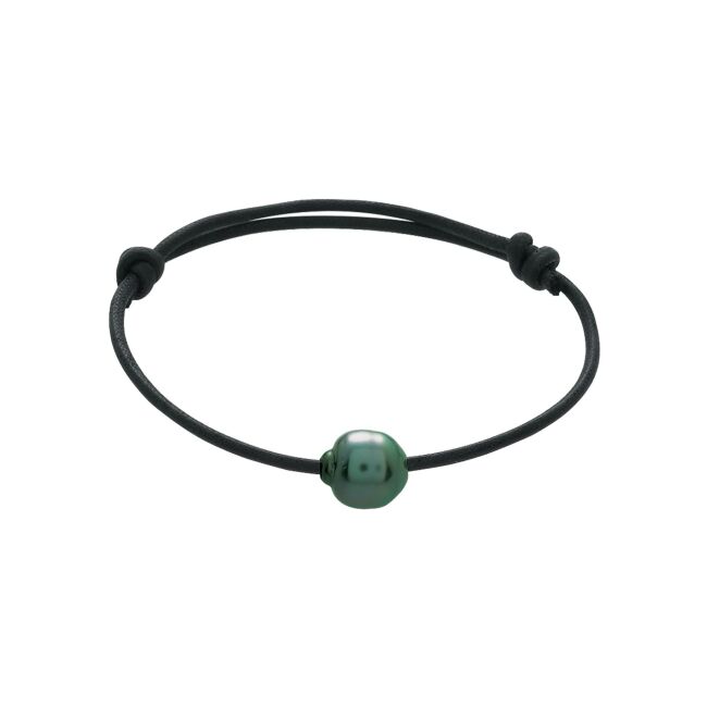 Bracelet corde en nylon, perle de culture et perle de tahiti